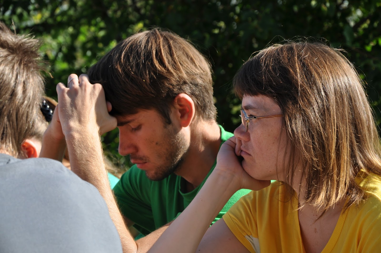 Pamiętam pewną parę, chłopaka i dziewczynę, którzy widać, że mają się ku sobie, czasem przychodzą pogadać… raz przyszła dziewczyna, opowiada o jakiejś sytuacji, która wywołała miedzy nimi napięcie… Potem przychodzi chłopak, też opowiada o tej sytuacji. Z obu stron widać, że nie mogą sobie poradzić z tą sytuacją, choć obiektywnie, z boku, ta sytuacja wydaje się być głupstwem, po prostu innym spojrzeniem na jakąś sprawę. I oni codziennie spotykają się ze sobą, spacerują, lubią się, ale nie potrafią porozmawiać o tej jednej sprawie, choć ona ich męczy, psuje humor, a rozmowa o tym dała by im wolność od tej sytuacji.