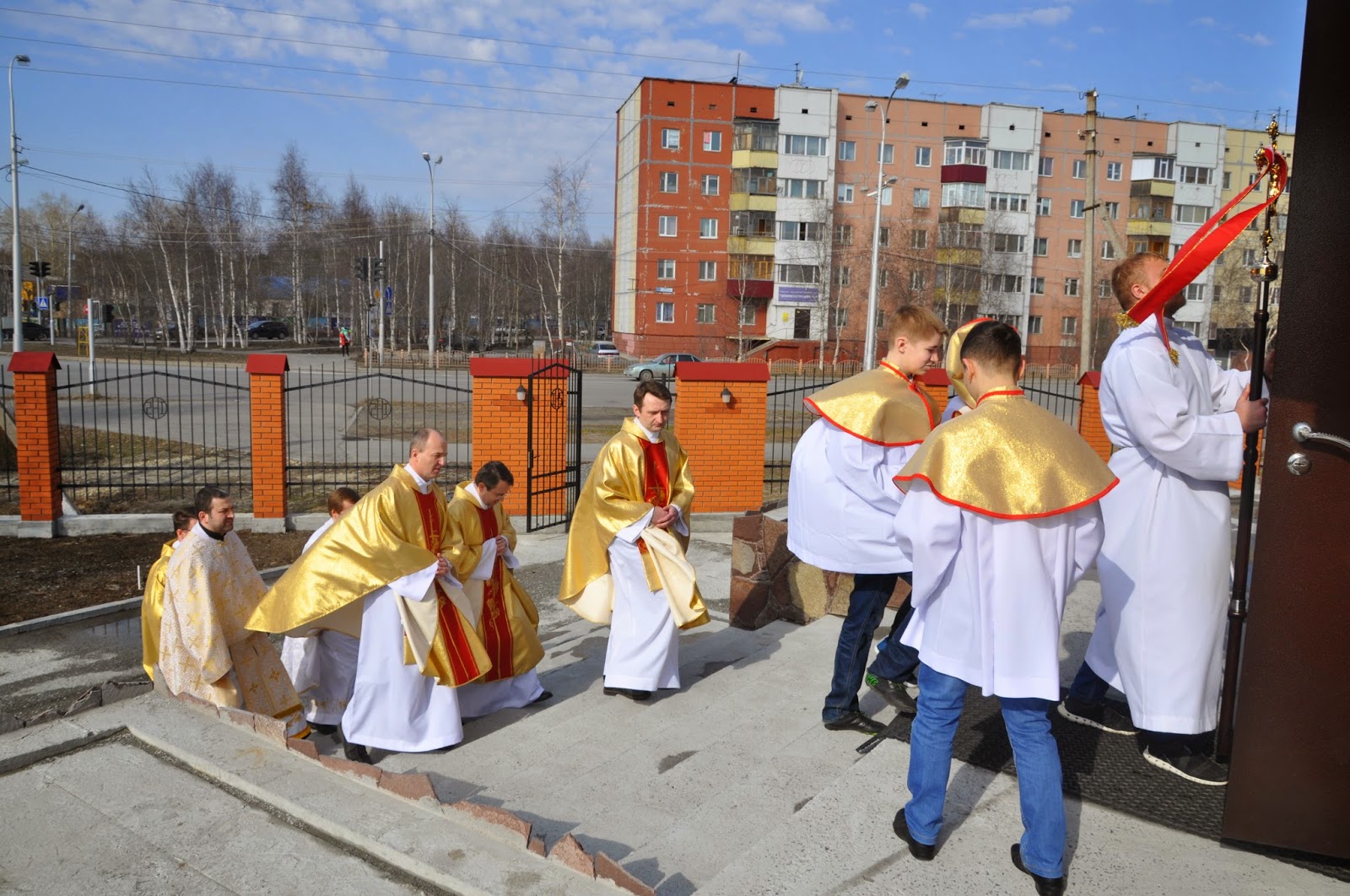 A potem poczęstunek w dolnym kościele dla wszystkich – sami parafianie zebrali między sobą pieniądze, podzielili obowiązki i przygotowali skromny, ale obfity stół dla wszystkich. Wielu przyjechało z innych miast – z Neftojuganska 70 km., z Lantoru 100 km., z Kogałymu 190 km, z Niżniewartowska 220 km, z Nojabrska 320 km.