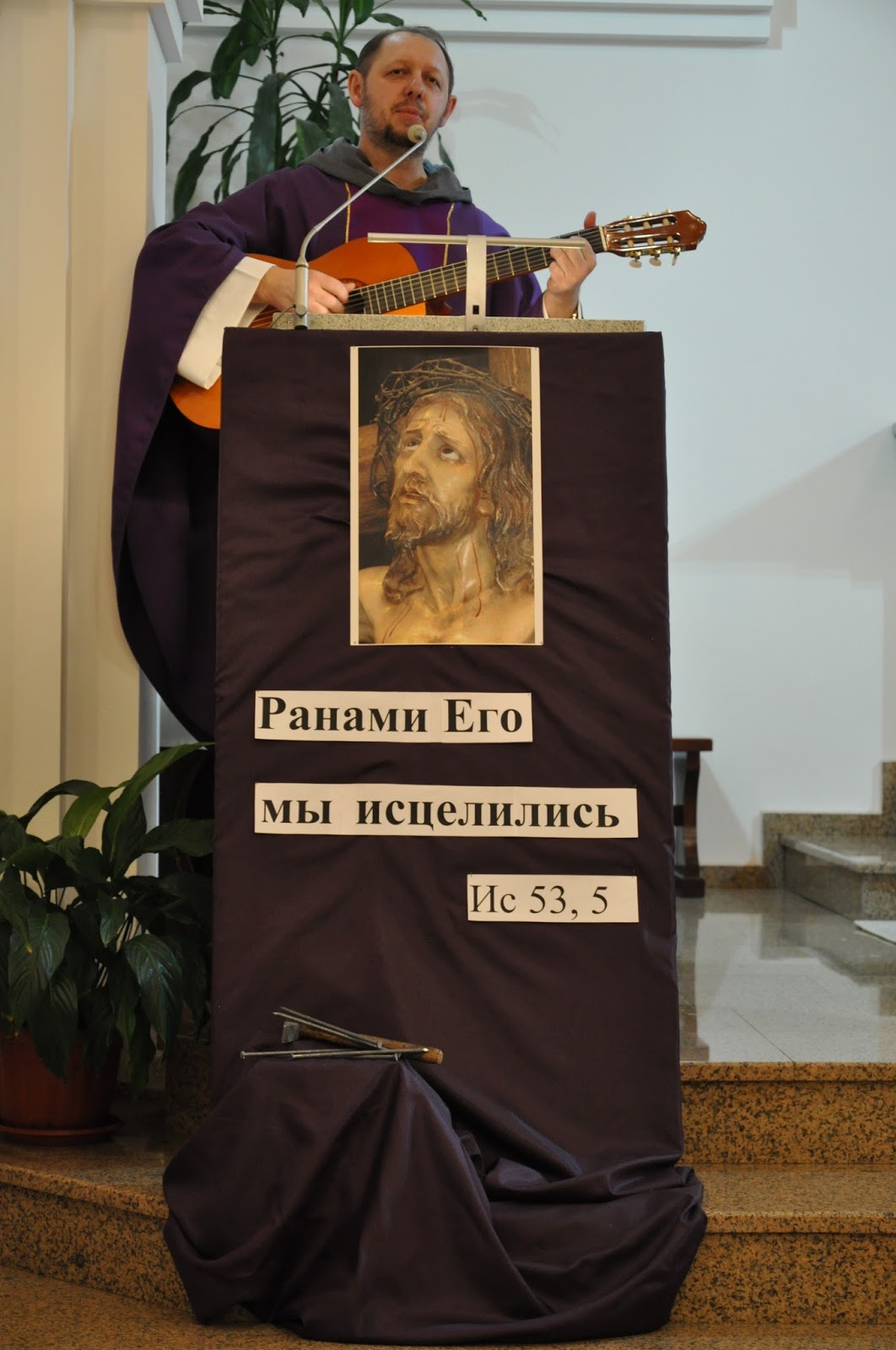 Wczoraj szczególnym wydarzeniem była Droga Krzyżowa, multimedialna. Ojciec Dariusz przygotował fragmenty z filmu Pasja, odnoszące się do poszczególnych stacji, dobrał muzykę, i przygotował rozważania. Bardzo dużo ludzi, nawet takich, którzy rzadko przychodzą, przyszło na Drogę Krzyżową. Żyjemy w dobie obrazu. Widać było jak mocno obaz, film pomaga w przeżywaniu, rozważaniu Drogi Krzyżowej.