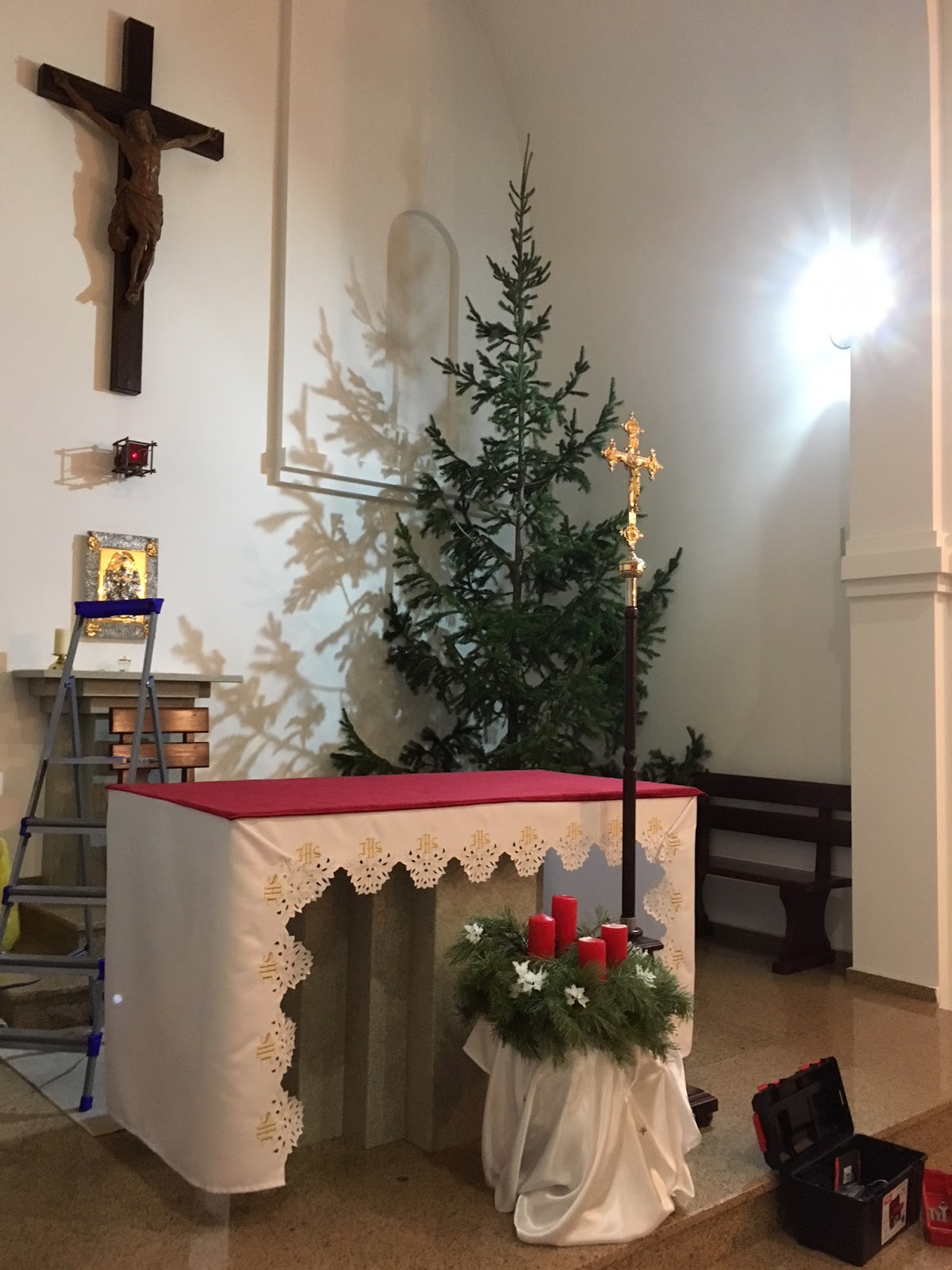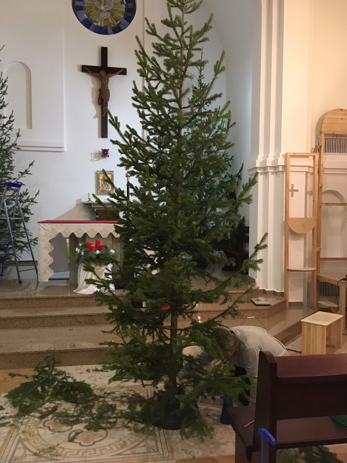 Uwielbiam Pana Boga za wczorajszy, dzisiejszy przykład pana Edwarda, który późnym wieczorem, po pracy, przyjechał do kościoła, żeby postawić choinki, przygotować kościół od takiej, nazwijmy to, męskiej strony. Jak wspomniałem, pracowaliśmy do późnej nocy a on dziś od wczesnego ranka znów pojechał do pracy. Niech Pan Bóg doda mu sił.