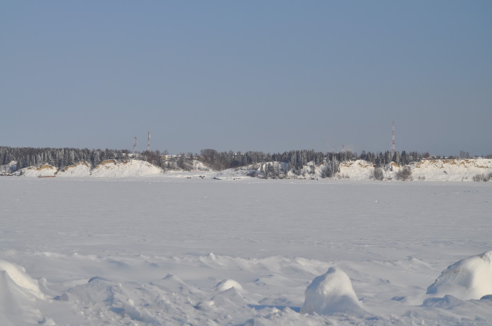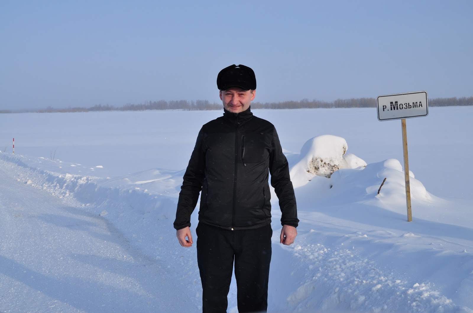 W poniedziałek rano ruszyliśmy do miejscowości (wioski, osady) Pieregrobnoje oddalonej od Niagani 120 km., leżącej nad brzegiem rzeki Ob. Problem jest taki, że do owej miejscowości nie prowadzi żadna droga. Teraz zimą mogliśmy dojechać po zimniku – jest to droga zrobiona na zmarzniętym błocie i przez zamarznięte rzeki. Kilkakrotnie przejeżdżaliśmy przez rzeki, również przez rzekę Ob, gdzie szerokość rzeki jest 2 km. Jazda po zimniku to ciekawa przygoda, jechaliśmy po takiej „drodze” około 60 km. Przed wjazdem do owej osady czekał na nas Michaił, ojciec rodziny do której zmierzaliśmy.