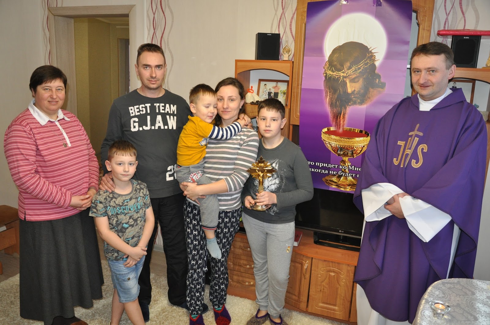 Poznaliśmy piękną rodzinę – Michaił i Lena, małżonkowie, rodem z Kazachstanu, katolicy, oraz ich trzej synowie. Okazało się, że mieszka tam jeszcze sporo ich krewnych, też katolików, choć tym razem nie spotkaliśmy ich. Porozmawialiśmy z nimi, pomodliliśmy się z nimi, odprawiliśmy u nich Mszę Św., skorzystaliśmy z ich gościnności, zjedliśmy obiad i około 16 zaczęliśmy nasz powrót do Niagani. Tam o 19.00 była Msza Św. na którą też przyszło kilka osób, katolików i nie tylko z Niagani.