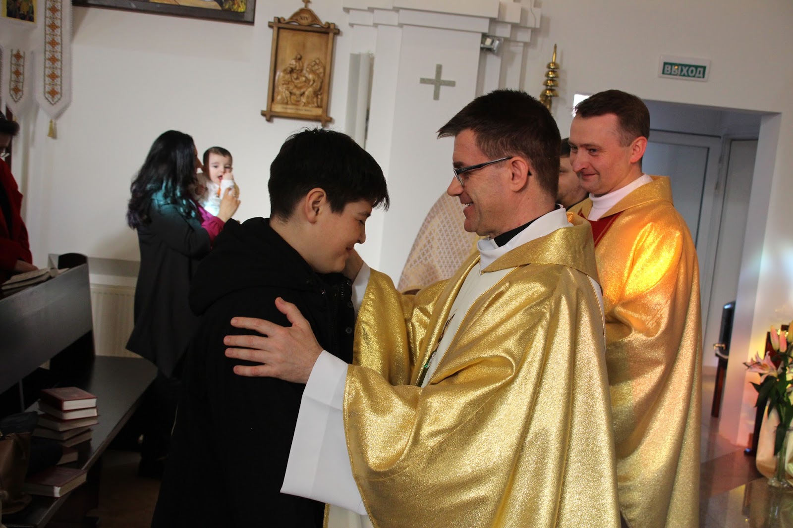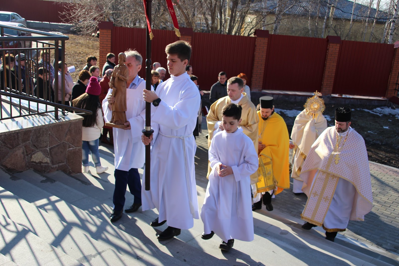 Mszy Św. przewodniczył i homilię wygłosił ks. Leszek Hryciuk, nasz dziekan, proboszcz parafii w Tiumenii (800 km. na południe od Surgutu). Po Mszy Św. było wystawienie Najświętszego Sakramentu, odśpiewaliśmy litanię do św. Józefa. Potem była procesja Eucharystyczna dookoła kościoła i Te Deum.